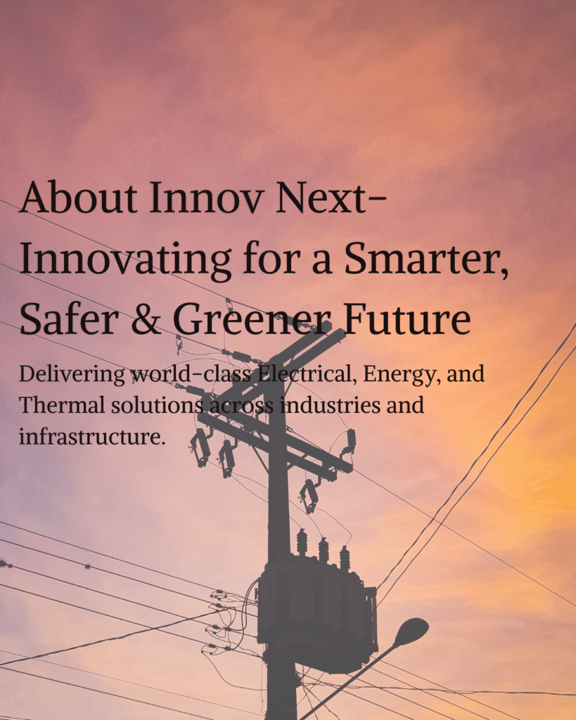 Innov Next is a trusted partner for industries, infrastructure, and utilities, providing cutting-edge electrical safety and thermal solutions Insulation, Energy Storage, and Data Centre solutions. With a vision to create sustainable environments, we combine innovation, technology, and expertise to power progress while protecting the planet.